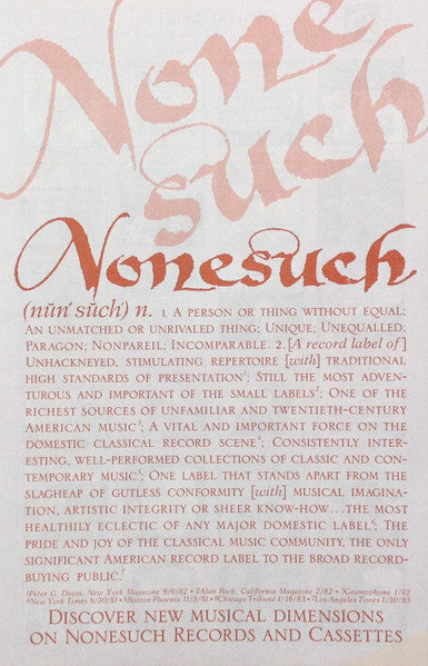 ℗&© 1973 Nonesuch Records, 665 Fifth Avenue, New York City, N.Y. 10022 a product of Elektra Records, a Division of Warner Communications, Inc.
