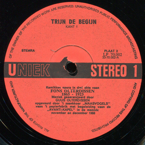 't Zaankkoer "Maasvogels", Avantikapel - Trijn De Begijn. Kemikke Opera. (LP, Album)