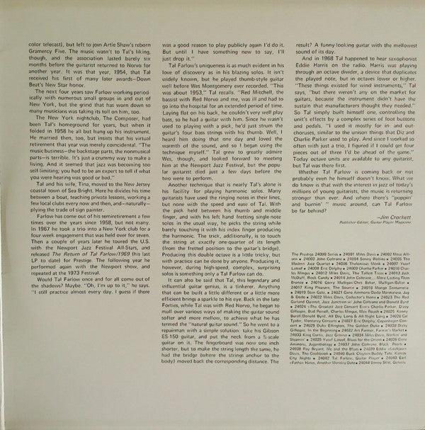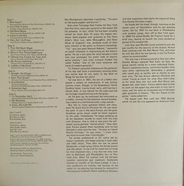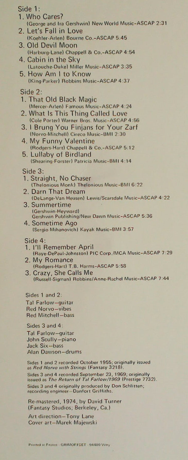 Side 3 and 4 recorded September 23, 1969; originally issued as "The Return Of Tal Farlow/1969" (Prestige 77321)