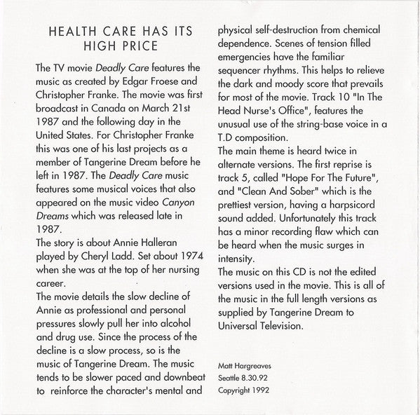 Tangerine Dream - Deadly Care (Original Soundtrack Recording) (CD, Album)