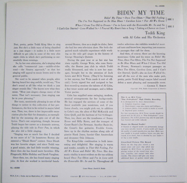 Teddi King With Al Cohn And His Orchestra - Bidin' My Time (LP, RE)