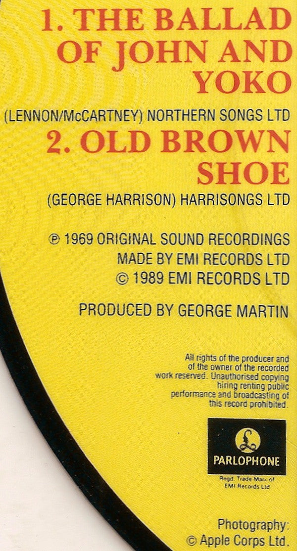 "The Ballad Of John And Yoko" (published by) Northern Songs Ltd