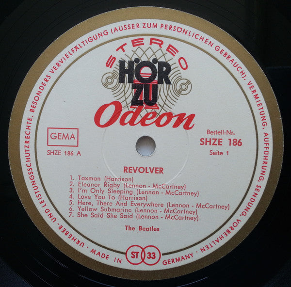 German first pressing with red/white/gold Odeon label with a black HörZu logo across.