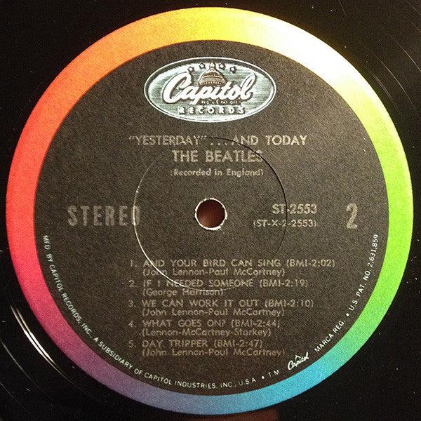 Black rainbow label with "subsidiary" rim text on the bottom of the label in the black: " MFD by CAPITOL RECORDS INC. A SUBSIDIARY OF CAPITOL INDUSTRIES, INC "
