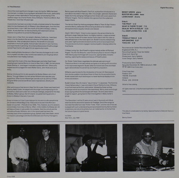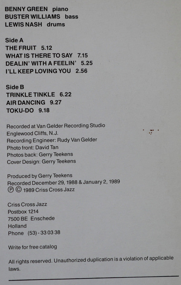 A1. The Fruit 5:12 A2. What Is There To Say 7:15 A3. Dealin' With A Feelin' 5:25 A4. I'll Keep Loving You 2:56 B1. Trinkle Tinkle 6:22 B2. Air Dancing 9:27 B3. Toku-Do 9:18
