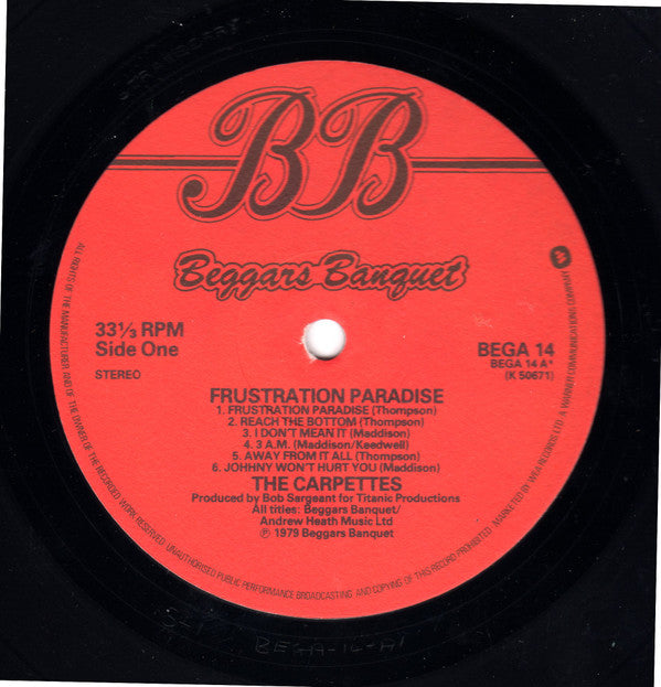 © 1979 A Beggars Banquet Recording. Distributed by WEA Records Ltd. A Warner Communications Company. [... Printed in England by Garrod and Lofthouse Ltd.