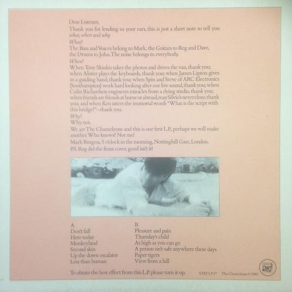 Copyright (c) The Chameleons Published By Tactik Music Ltd. Published By Virgin Music (Publishers) Ltd. Phonographic Copyright (p) Statik Records Pressed By EMI Records
