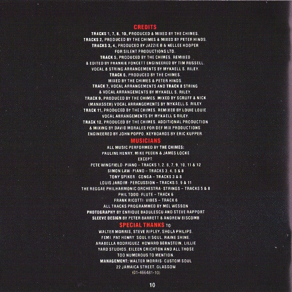 The 12 page booklet contains photos, lyrics, and artist credits.