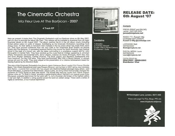 The Cinematic Orchestra - 2007.06.05 Ma Fleur Live At The Barbican 4 Track EP (CD, EP, Promo)