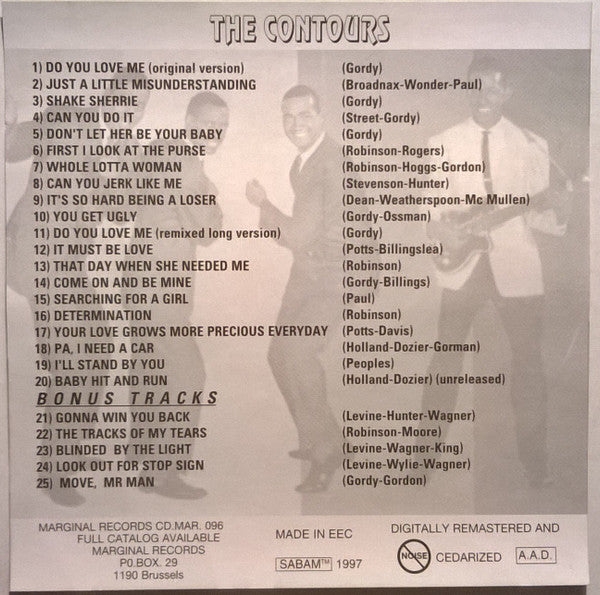 1. Do You Love Me 2. Just A Little Misunderstanding 3. Shake Sherrie 4. Can You Do It 5. Don't Let Her Be Your Baby 6. First I Look At The Purse 7. Whole Lotta Woman 8. Can You Jerk Like Me 9. It's So Hard Being A Loser 10. You Get Ugly 11. Do You Love Me 12. It Must Be Love 13. That Day When She Needed Me 14. Come On And Be Mine 15. Searching For A Girl 16. Determination 17. Your Love Grows More Precious Everyday 18. Pa, I Need A Car 19. I'll Stand By You 20. Baby Hit And Run 21. Gonna Win You Back [bonus] 22. The Tracks Of My Tears [bonus] 23. Blinded By The Light [bonus] 24. Look Out For Stop Sign [bonus] 25. Move, Mr Man [bonus]
