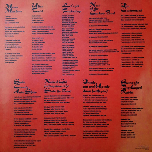 A1. Mean Machine A2. Ultra Twist A3. Let's Get F*cked Up A4. Nest Of The Cuckoo Bird A5. I'm Customized A6. Sado County Auto Show A7. Naked Girl Falling Down The Stairs B1. How Come You Do Me? B2. Inside Out And Upside Down (With You) B3. Trapped Love B4. Swing The Big Eyed Rabbit B5. Strange Love B6. Blues Blues Blues B7. Sinners B8. Route 66 (Get Your Kicks On)
