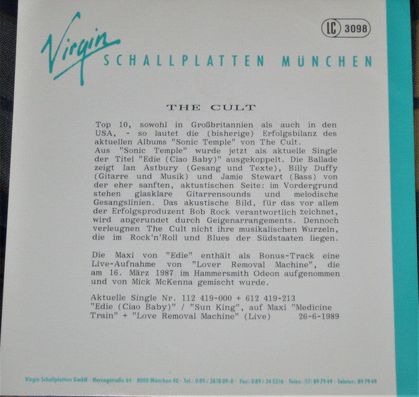 Plain white sleeve, some copies with a promo information sheet. On label: "Promotion Only". ℗ & © 1989 Beggars Banquet Records