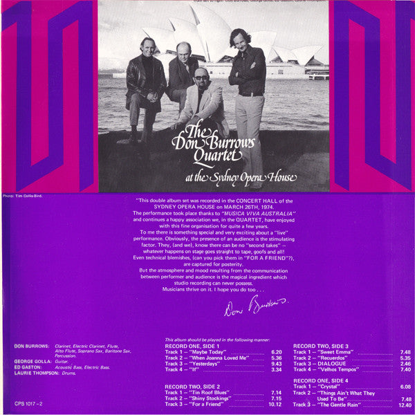 The Don Burrows Quartet - At The Sydney Opera House (2xLP, Album)