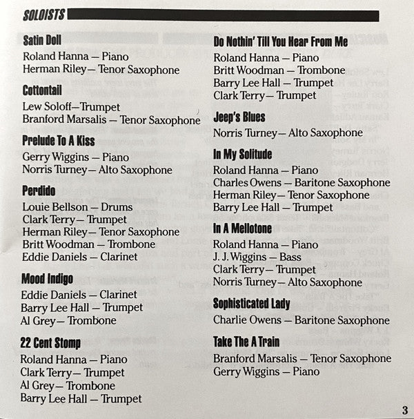 The Duke Ellington postage stamp design is incorporated on the album cover under license to GRP Records, Inc.: 1986 U.S. Postal Service