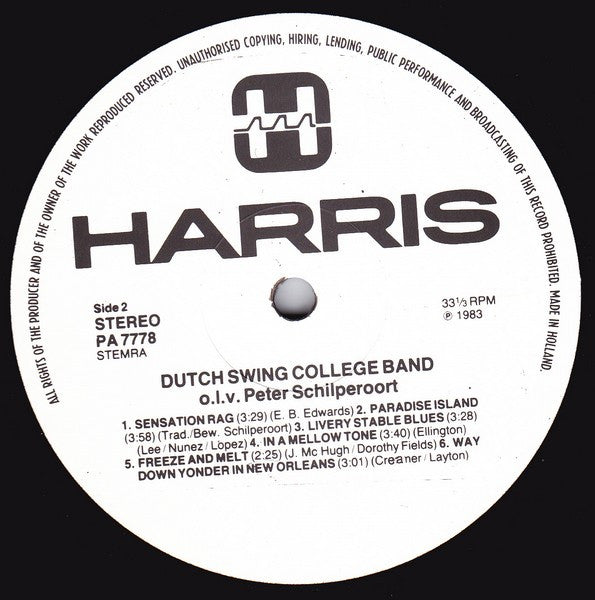 Phonographic Copyright (p) DSC Production Manufactured For Harris Lacquer Cut At Bovema / EMI Studios Lacquer Cut At Bovema / EMI Studios