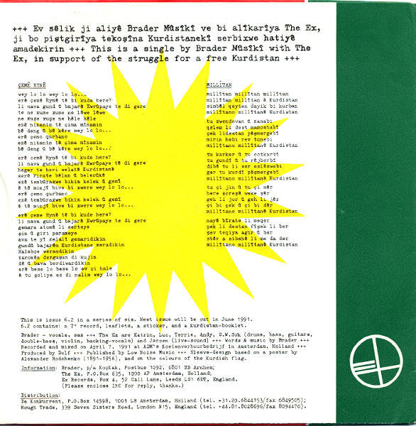 This is issue 6.2 in a series of six. 6.2 contains: a 7" inch record, leaflets, a sticker and a Kurdistan-booklet.