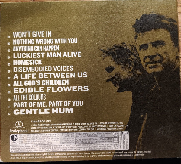 1. Won't Give In 2. Nothing Wrong With You 3. Anything Can Happen 4. Luckiest Man Alive 5. Homesick 6. Disembodied Voices 7. A Life Between Us 8. All God's Children 9. Edible Flowers 10. All The Colours 11. Part Of Me, Part Of You 12. Gentle Hum