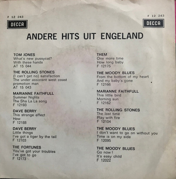 Released in a Dutch picture sleeve on a red Decca label, stating ''Made in Holland'' at 4 o'clock.