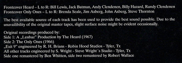 The Heard tracks licensed from R. & A. Clendenen. The Only Ones tracks licensed from J. & J. Axberg. P&C 2003 Break-A-Way Records, all rights reserved.