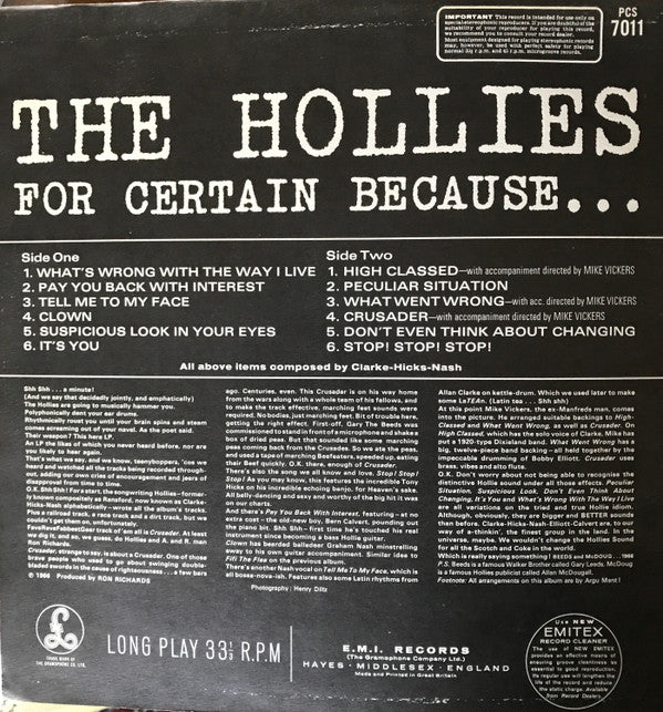 A1. What's Wrong With The Way I Live A2. Pay You Back With Interest A3. Tell Me To My Face A4. Clown A5. Suspicious Look In Your Eyes A6. It's You B1. High Classed B2. Peculiar Situation B3. What Went Wrong B4. Crusader B5. Don't Even Think About Changing B6. Stop! Stop! Stop