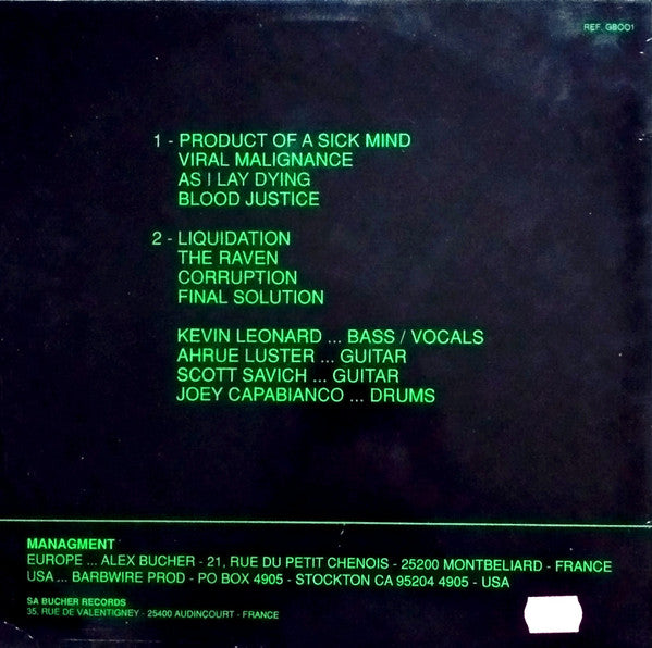 Tracks A1 to A4: complete "Product Of A Sick Mind" 1989 demo tape, recorded in August 1988.