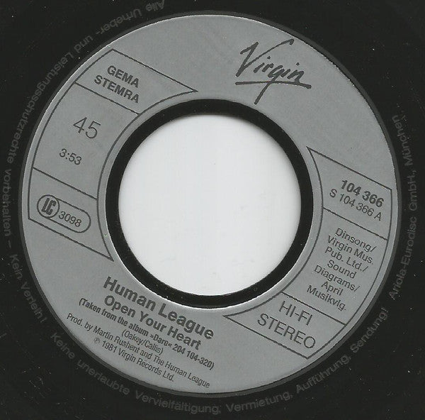 The Human League - Open Your Heart (7", Single, RP)