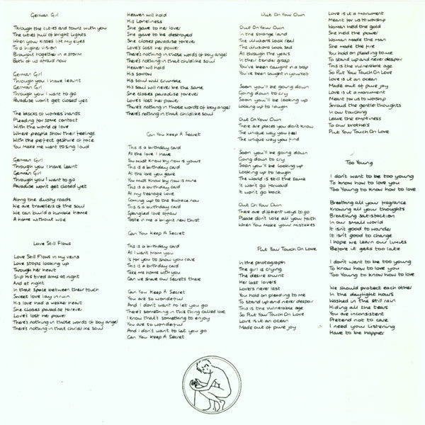 Tracks 1 to 9 are from the original debut album [r=2206324 released in 1984. Missing are the tracks, "Too Young", " When You Look At Boys", and "Start Of The Search", although their lyrics are reproduced on inner sleeve. The remaining tracks are compiled from various singles and B-sides.
