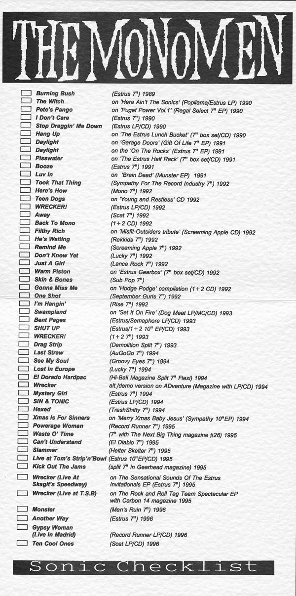 Folded sleeve with The Mono Men discography inside.