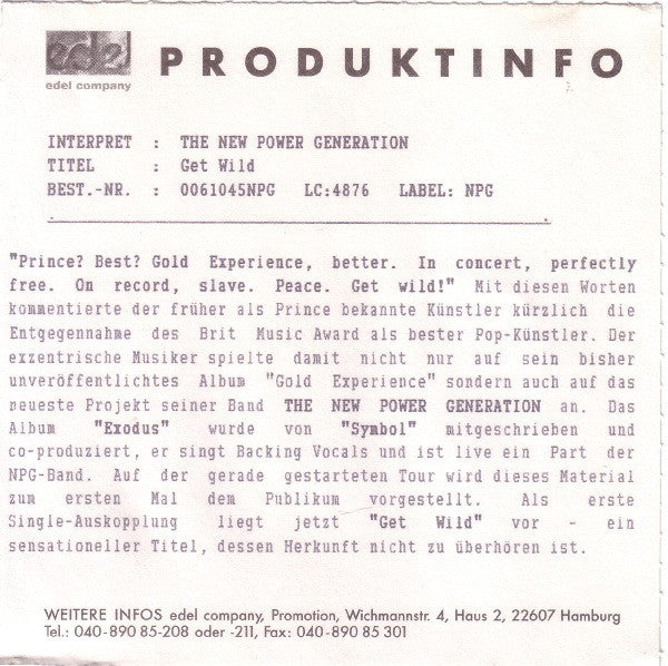 Distribution: D: edel company, A: emv, Benelux: edel/Sony, CH: Phonag, E: edel/Errece, F: edel France, I: edel Italia, Scandinavia: edel/Sony, SF: edel/PolyGram, UK: edel UK/ Pinnacle