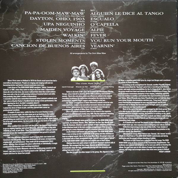 A1. PA-PA-OOM-MAW-MAW 2:12 A2. Dayton Ohio, 1903 1:40 A3. Upa Neguinho 3:25 A4. Maiden Voyage 4:11 A5. Walkin' 2:18 A6. Stolen Moments 3:17 A7. Cancion De Buenos Aires 2:48 B1. Alguien Le Dice Al Tango 2:56 B2. Escualo 3:33 B3. O Capella 2:33 B4. Alfie 2:35 B5. Fever 4:00 B6. You Run Your Mouth (And I Run My Business, Brother) 2:00 B7. Yearnin' 1:49