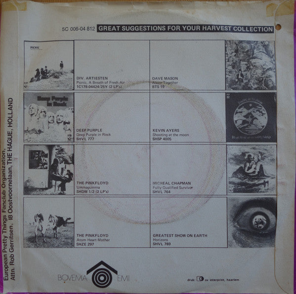 On back cover (next to nice set of Harvest LPs being advertised) it reads: