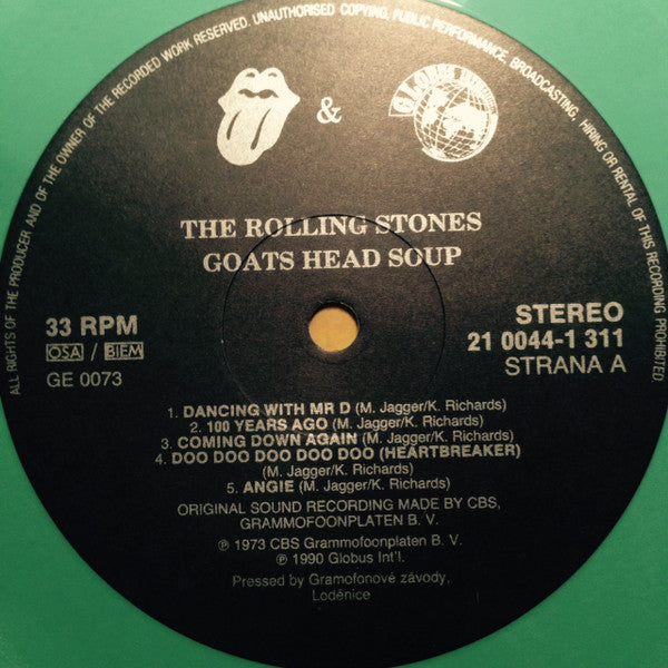 Only a very few were made as splattered and pistachio green vinyl as a testpressing.