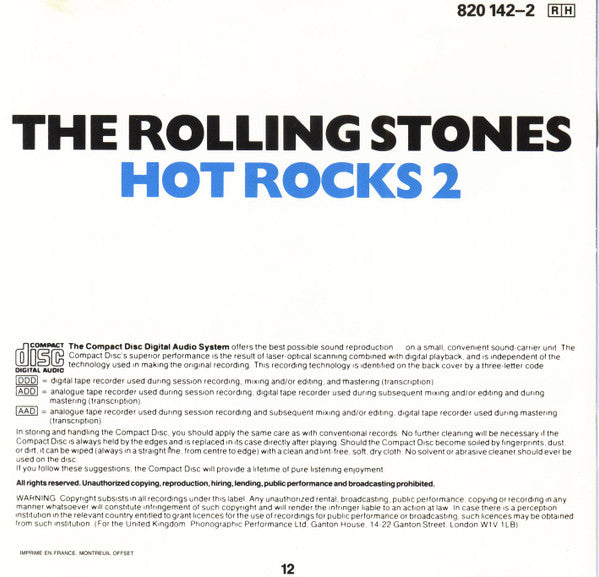 12 page booklet without red banner in upper left corner with ads for all Stones CDs on London Records.