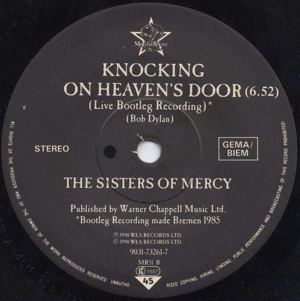 Picture sleeve of top opening paper with a soft sheen finish. Track B: Bootleg recording made in Bremen 1985. ℗ 1990 WEA Records Ltd. © 1990 WEA Records Ltd. Made in Germany. Runouts are stamped.