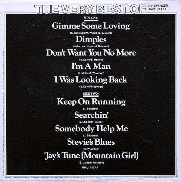 The Spencer Davis Group - The Very Best Of The Spencer Davis Group (LP, Comp, Mono, Ter)