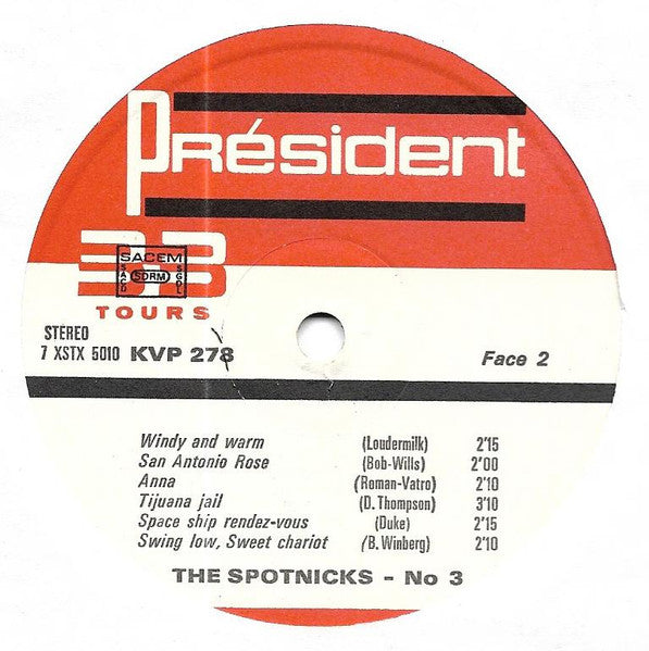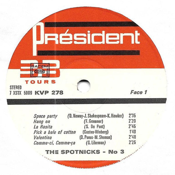 A1. Space Party 2:35 A2. Hang On 2:20 A3. La Rosita 2:45 A4. Pic A Bale Of Cotton 1:40 A5. Valentina 2:40 A6. Comme-ci, Comme-ça 2:25 B1. Windy And Warm 2:15 B2. San Antonio Rose 2:00 B3. Anna 2:10 B4. Tijuana Jail 3:10 B5. Space Ship Rendez-vous 2:15 B6. Swing Low, Sweet Chariot 2:10