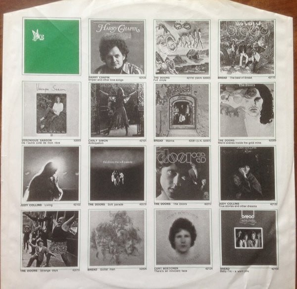 Rights society is SACEM (boxed logo on labels). Distributor is Kinney Filipacchi Music S.A. Has Elektra inner sleeve.