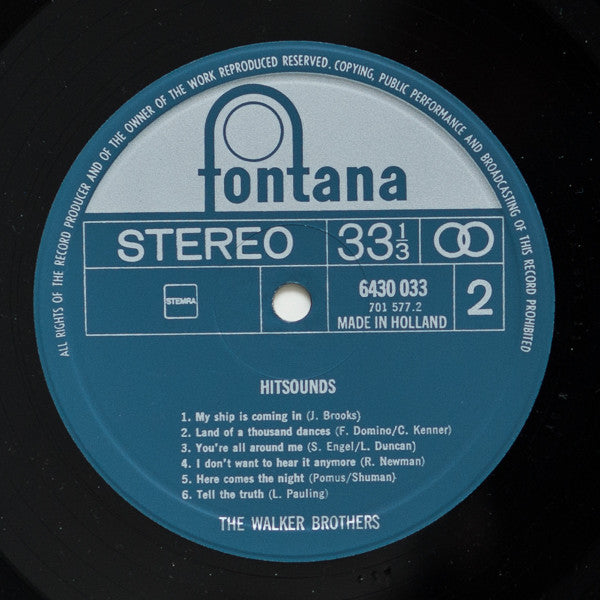 A1. The Sun Ain't Gonna Shine Any More A2. Make It Easy On Yourself A3. There Goes My Baby A4. First Love Never Dies A5. Lonely Winds A6. Love Minus Zero B1. My Ship Is Coming In B2. Land Of Thousand Dances B3. You're All Around Me B4. I Don't Want To Hear It Anymore B5. Here Comes The Night B6. Tell The Truth