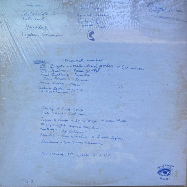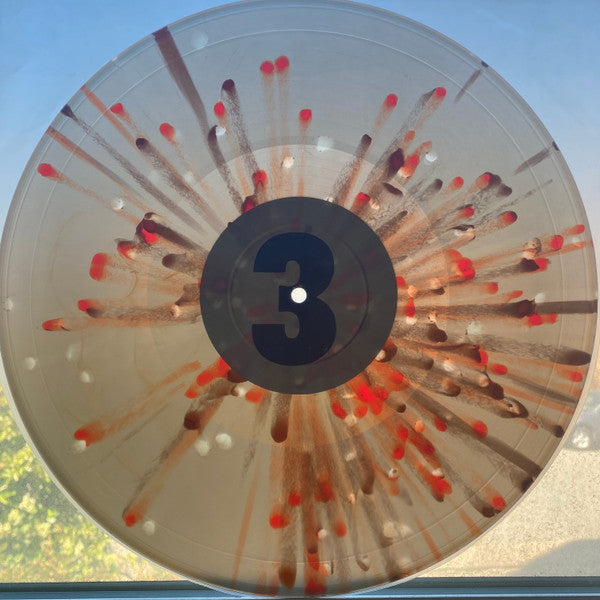Record Store Day 2021 limited edition on "Cosmic Black Ice" (translucent gray with colored splatter) double-vinyl. Etching on Side D.