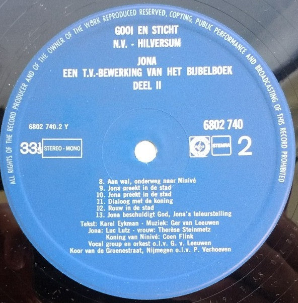 Jona, a TV-adaptation of the bible book. Includes a thirteen page booklet with text and photo's.