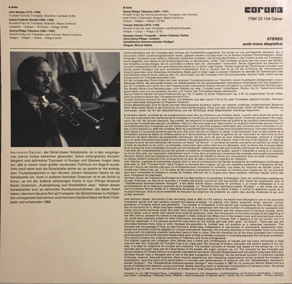 A1. Trumpet Tune Für Trompete, Streicher, Cembalo 3:40 . Konzert F-Dur Für Trompete, Streicher, Basso Continuo 6:50 . Konzert D-Dur Für Trompete, zwei Violinen, Basso Continuo 8:40 . Konzert D-Dur Für Violine Concertato, Trompete, Drei Violinen, Zwei Violen, Violoncello Obligato, Basso Continuo 12:45 . Konzert C-Dur Für Zwei Trompeten Und Streichorchester 5:10