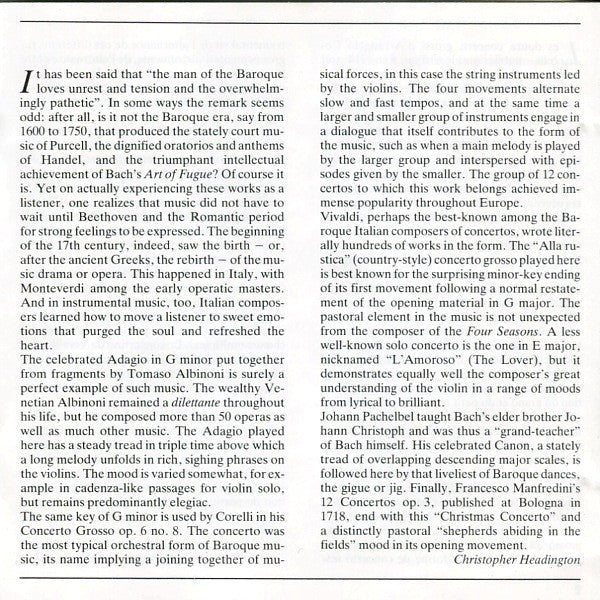 ℗ 1970 (Corelli, Manfredini) / 1971 (Vivaldi) / 1972 (Albinoni, Pachelbel) Polydor International GmbH, Hamburg