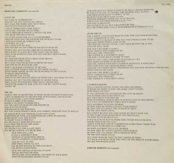Issued with a printed inner lyrics-sleeve.