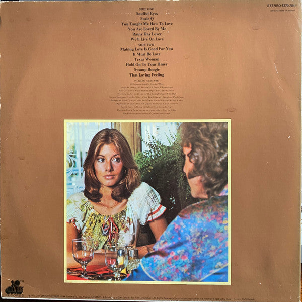 A1. Soulful Eyes A2. Susie Q A3. You Taught Me How To Love A4. You Are Loved By Me A5. Rainy Day Lover A6. We'll Live On Love B1. Making Love Is Good For You B2. It Must Be Love B3. Texas Woman B4. Hold On To Your Hiney B5. Swamp Boogie B6. That Loving Feeling