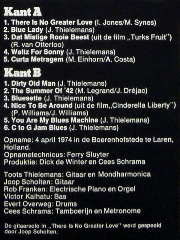 A1. There Is No Greater Love A2. Blue Lady A3. Dat Mistige Rooie Beest A4. Waltz For Sonny A5. Curta Metragem B1. Dirty Old Man B2. The Summer Of '42 B3. Bluesette B4. Nice To Be Around B5. You Are My Blues Machine B6. C To G Jam Blues
