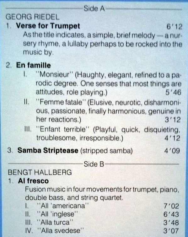 Recorded in Soundtrade Studio, Solna, Sweden, May 16 and June 7-8, 1982.