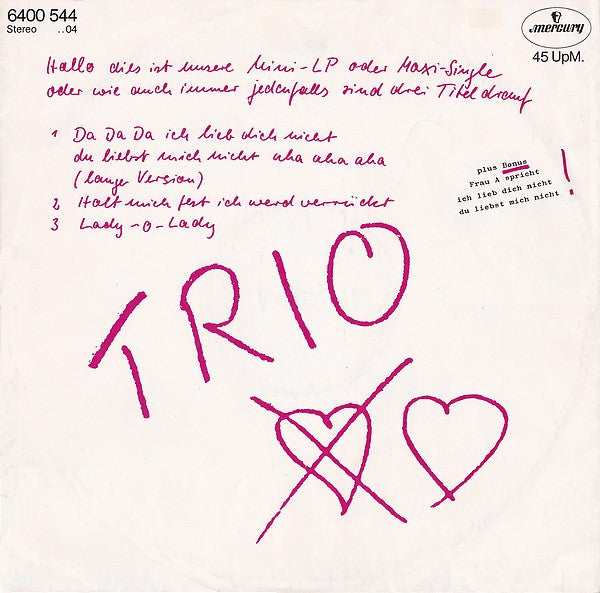 "Hallo dies ist unsere Mini-LP oder Maxi-Single oder wie auch immer jedenfalls sind drei Titel drauf"