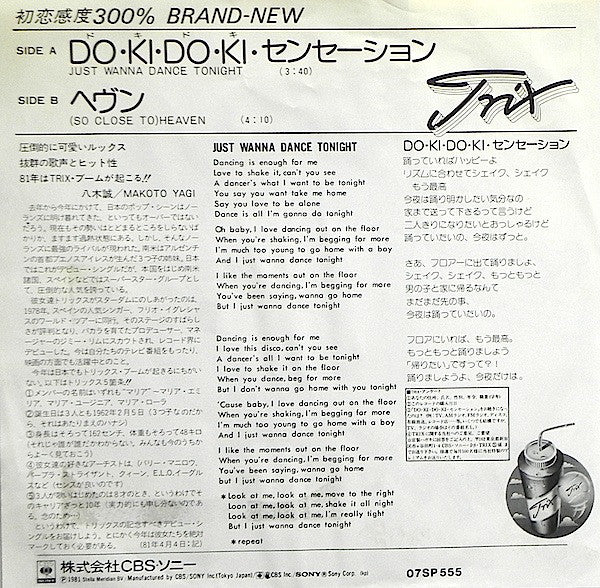 Trix - Do・Ki・Do・Ki・センセーション Just Wanna Dance Tonight (7", Single)