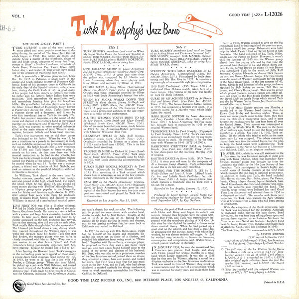 This is apparently the first of a two-record set. The back of the cover says, "The Turk Story, Part II is continued on GTJ L-12027. Recorded in Los Angeles January 19, 1950.