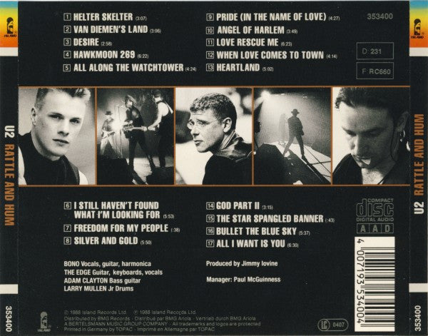 4, 10, 12 to 14, 17. © 1988 U2. All rights for U.S.A. adm. by Chappell & Co. (ASCAP)